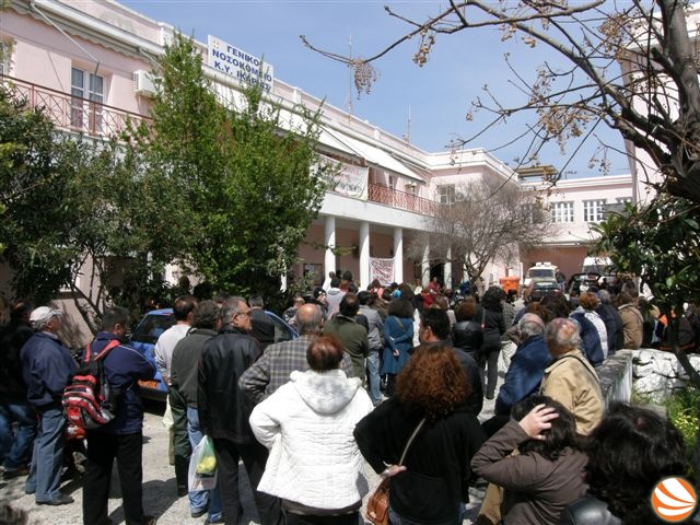 «Κάτω τα χέρια από το νοσοκομείο των προγόνων μας, όχι στην διοικητική συνένωση με την Σάμο». «Κάτω οι πολιτικές της κυβέρνησης-τρόικας, αγώνας Αλληλεγγύη». «Δωρεάν Υγεία για όλους», αυτά γράφουν τα πανό που αναρτήθηκαν στο προαύλιο του νοσοκομείου Ικαρίας σήμερα το πρωί. Οι 130 περίπου, κάτοικοι που μαζεύτηκαν να διαμαρτυρηθούν για το παρόν αλλά και για το μέλλον της υγείας συνολικά στο νησί μας φαντάζουν πολύ λίγοι αν αναλογιστεί κανείς ότι στην Ικαρία κατοικούν 7.000 άνθρωποι, στον Αγ. Κήρυκο 2.500 άνθρωποι! Εδώ που έχει φτάσει η κατάσταση (να παλεύουμε για τα αυτονόητα, να παλεύουμε να κρατήσουμε τα κεκτημένα χρόνων) μόνο με την συμμετοχή, την επιμονή, όλο και περισσοτέρων θα μπορέσουμε να σώσουμε κάτι τις! Μετά τις ομιλίες των εκπροσώπων εργαζομένων, η παράσταση διαμαρτυρίας μεταφέρθηκε στο γραφείο της αναπληρώτριας διοικήτριας, η οποία δήλωσε την αμέριστη συμπαράσταση της στους αγώνες των Ικαριωτών και θα κάνει ότι είναι δυνατόν για να μην φύγει κανένας γιατρός, κανένα μέλος του προσωπικού των μονάδων υγείας του νησιού. Ίδωμεν!