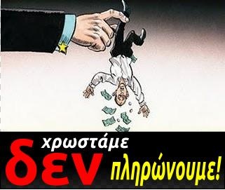 Δεν έχουμε- δεν θέλουμε- αρνούμαστε να πληρώσουμε τα χαράτσια τους. Το χρέος είναι της πλουτοκρατίας Κανένας φόβος από τις απειλές που εκτοξεύουν καθημερινά η κυβέρνηση και τα παπαγαλάκια της.