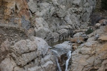 Στη φωτογραφία 1 βλέπουμε το σημείο του δρόμου στο ρέμα του Ρυάκα που βρίσκεται μετά τη Δάσα του Μαγγανίτη. Φαίνεται καθαρά το επίπεδο που αρχικά βρισκόταν ο δρόμος αλλά και η κοίτη όπως διαμορφώθηκε από θεομηνία του 2010. Το νερό σήμερα κυλάει 8 μέτρα πιο χαμηλά αφού η ορμή του εκείνο το βράδυ παρέσυρε χιλιάδες κυβικά μέτρα χώματος και βράχων.