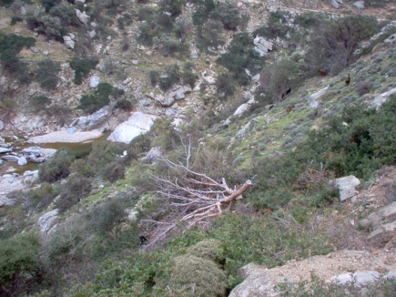 Στις 22 Μαρτίου του τρέχοντος έτους, ο γράφων βρέθηκε συμπτωματικά στο μέρος εκείνο του δρόμου προς Καρκινάγρι που διασχίζει το φαράγγι του Χάλαρη στο Να. Μέρος της κατάστασης που επικρατούσε εκεί τότε, όπως και κάθε χρόνο την ίδια εποχή, αποτυπώθηκε στις παρακάτω φωτογραφίες.