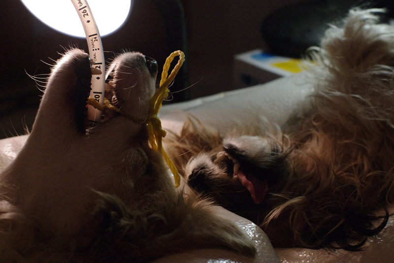 Η φωτογράφηση της δουλειάς του κτηνιατρικού προγράμματος που έγινε στην Ικαρία από τις 2 ως τις 11 Δεκεμβρίου ήταν πολλαπλή πρόκληση για μένα. Ο κορμός του προγράμματος ήταν το πρόχειρο χειρουργείο που στήθηκε σε ένα "άθλιο καλύβι" (όπως το αποκάλεσε ένας ντόπιος) που άλλοτε ήταν δημοτικό σχολείο, κοντά στο γήπεδο του Αγίου Δημητρίου Ραχών. Εκεί μέσα, στις στιγμές αιχμής της δουλειάς, ήταν ξαπλωμένα στα σανίδια του πατώματος αρκετά σκυλιά, ναρκωμένα και τυλιγμένα με σκεπάσματα, κι εγώ φοβόμουν συνεχώς να μην πατήσω κανένα, καθώς ελισσόμουν ανάμεσα στις κτηνιάτρους και τις νοσοκόμες για να πετύχω τις καλύτερες πόζες. "Εντάξει" σκέφτηκα τελικά, "θα σταθώ πιο πίσω και για να βάλω χαμηλή ταχύτητα διαφράγματος και να βγάλω καθαρές λήψεις με, θα στηρίζομαι στους τοίχους". Τότε όμως, έσβησαν τα φώτα! Κραυγή απελπισίας από το χειρουργικό τραπέζι: "Θεέ μου, όχι τώρα διακοπή ρεύματος!" "Συγνώμη" φώναξα. Καθώς ακουμπούσα στον τοίχο, είχα κλείσει τον διακόπτη με την πλάτη μου. Τότε πρόσεξα στο πάτωμα τον βραστήρα απολύμανσης που έκαιγε και έβγαζε ατμούς. Ήταν δίπλα στα πόδια μου. "Ωχ, καλά θα κάνω να μη σκοντάψω και σ' ΑΥΤΟ!"