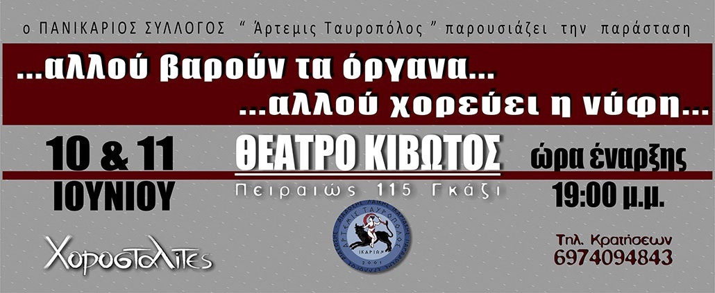 10 & 11 Ιουνίου στο Θέατρο ΚΙΒΩΤΟΣ (Πειραιώς 115, Γκάζι).