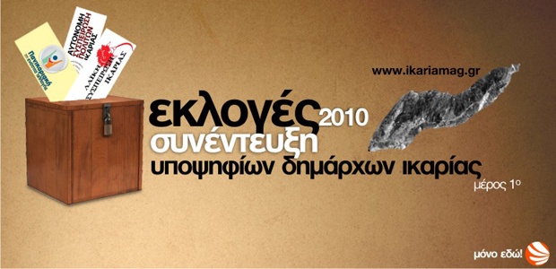 Από την άλλη, είναι τόσα πολλά αυτά που θα θέλαμε να ρωτήσουμε τους 3 υποψηφίους για τη Δημαρχία Ικαρίας (όλους μαζί αλλά και τον καθένα ξεχωριστά) και τους ευχαριστούμε πολύ για την ανταπόκριση τους. Επειδή όμως δε γίνεται να τα ρωτήσουμε όλα, καταλήξαμε σε συγκεκριμένα. Σκοπός άλλωστε, δεν είναι να παρουσιαστεί όλο το πρόγραμμα των συνδυασμών (δε θα ήταν δυνατό κάτι τέτοιο). Θέλαμε οι αναγνώστες μας να γνωρίσουν συνοπτικά τις θέσεις για κάποια θέματα αλλά και τους ίδιους τους υποψηφίους, για να σχηματίσουν τη δική τους άποψη. Άλλωστε, δε νομίζουμε να υπήρξε άλλη φορά στο παρελθόν, η δυνατότητα να διατυπώσουν οι υποψήφιοι Δήμαρχοι Ικαρίας τις θέσεις τους επί κοινών ερωτημάτων.